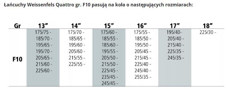 Weissenfels Quatro gr.F10 łańcuchy śniegowe
