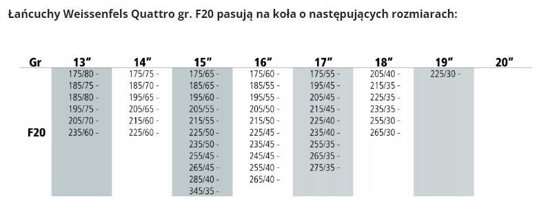 Weissenfels Quatro gr.F20 łańcuchy śniegowe